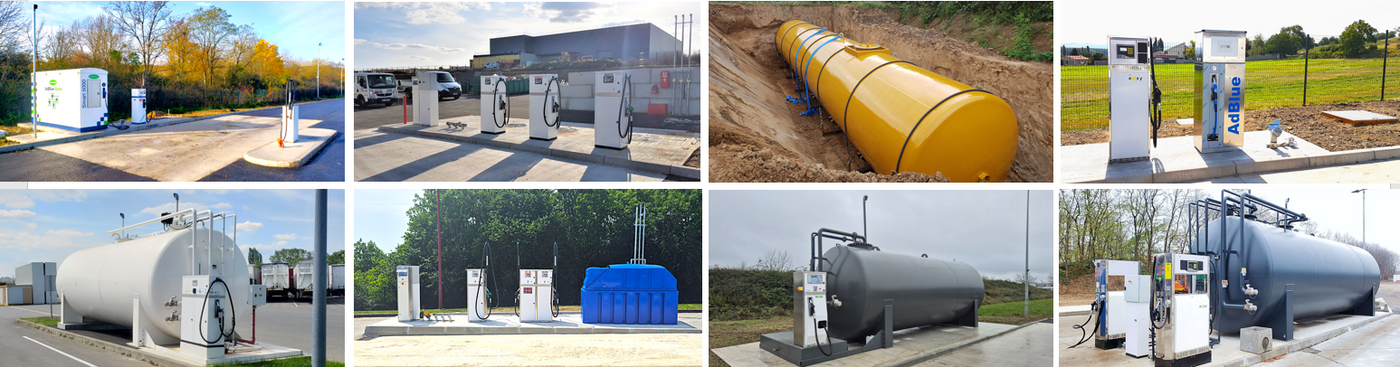 AUTOMATIC Technologies vous propose une solution complète et sur-mesure pour votre station-service privative, conforme à la réglementation en vigueur. Sur cette image, explorez chaque composant essentiel : des cuves à double paroi sécurisées, des distributeurs gasoil robustes, des bornes de gestion intelligentes et des jauges de niveau précises.